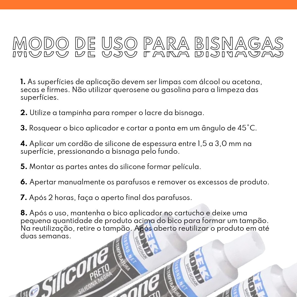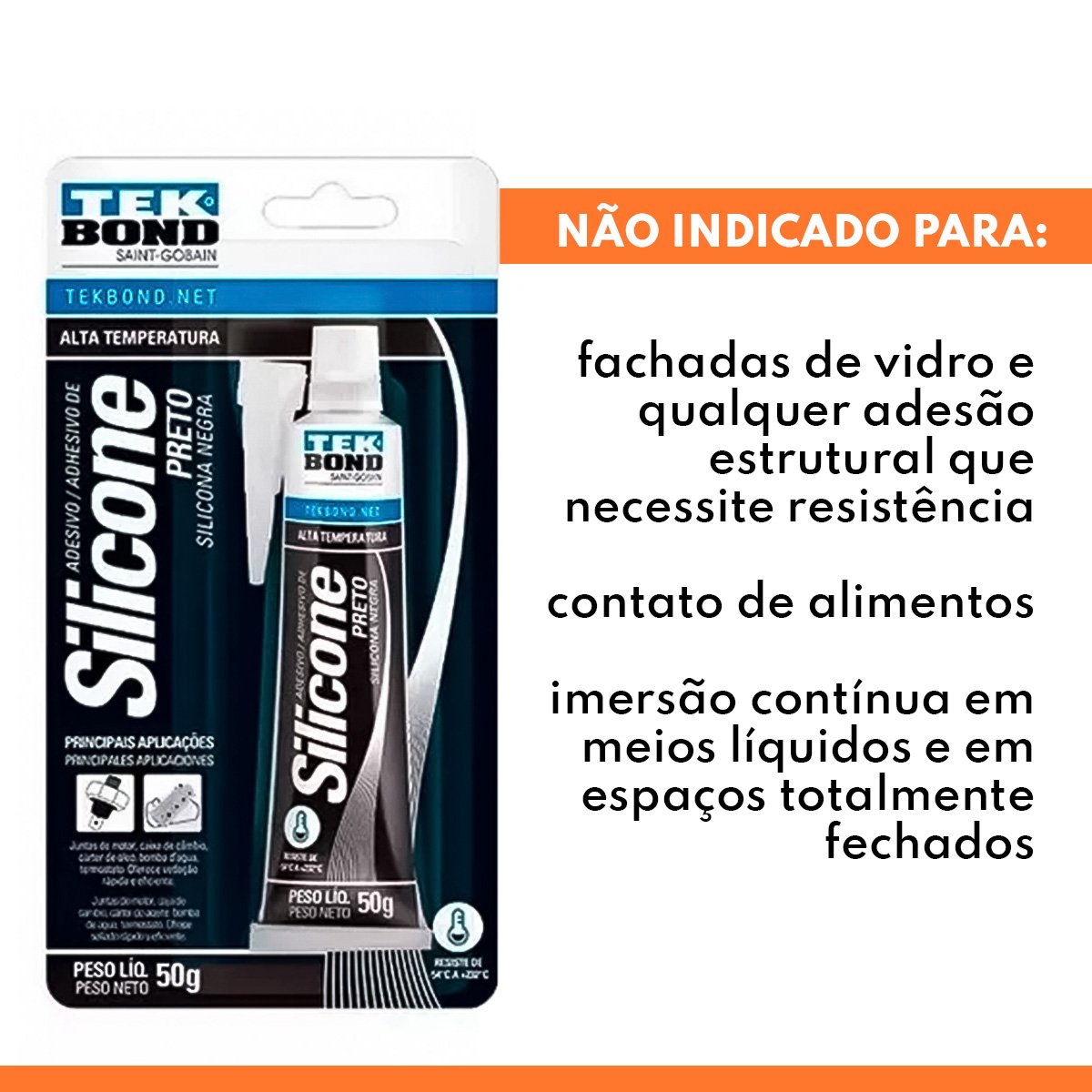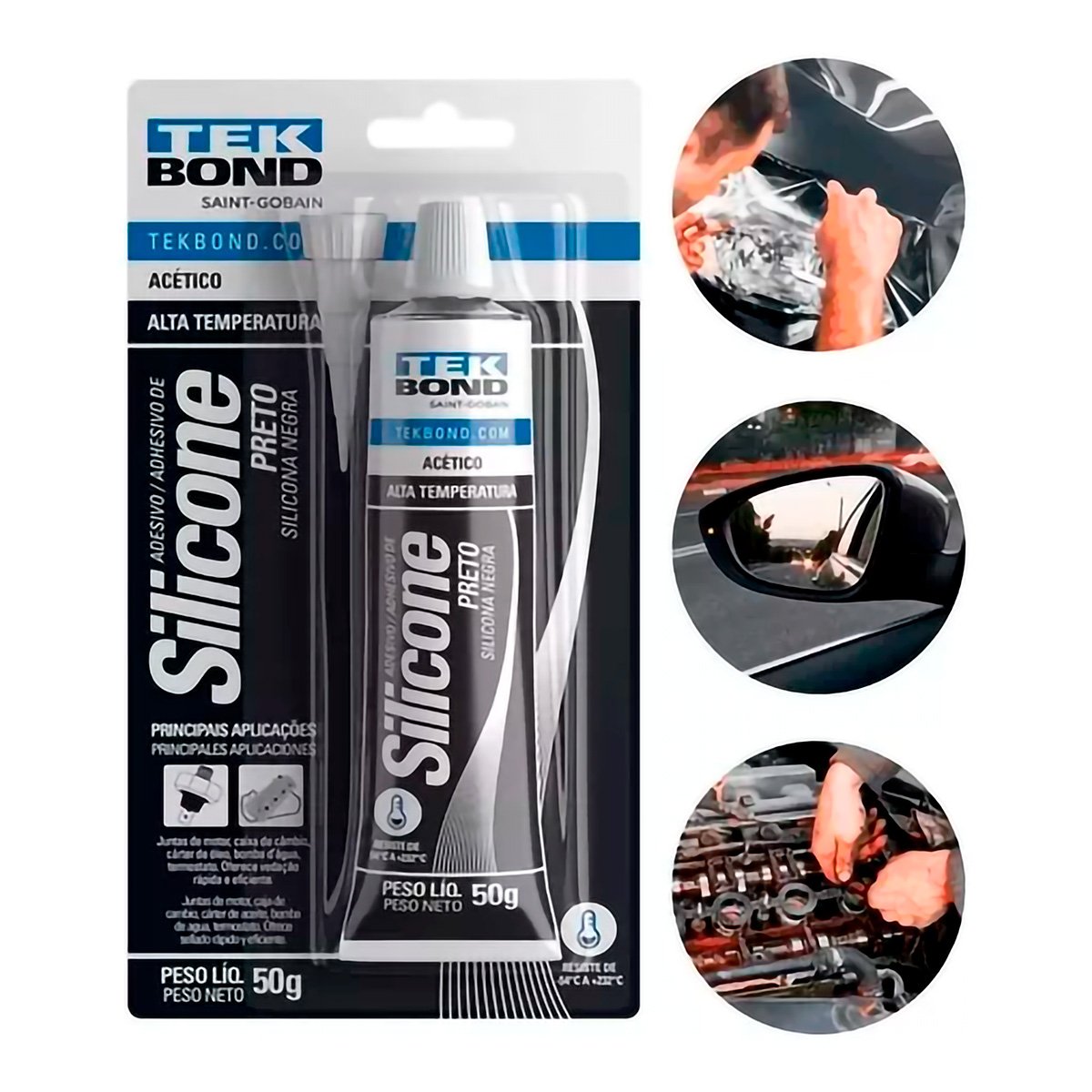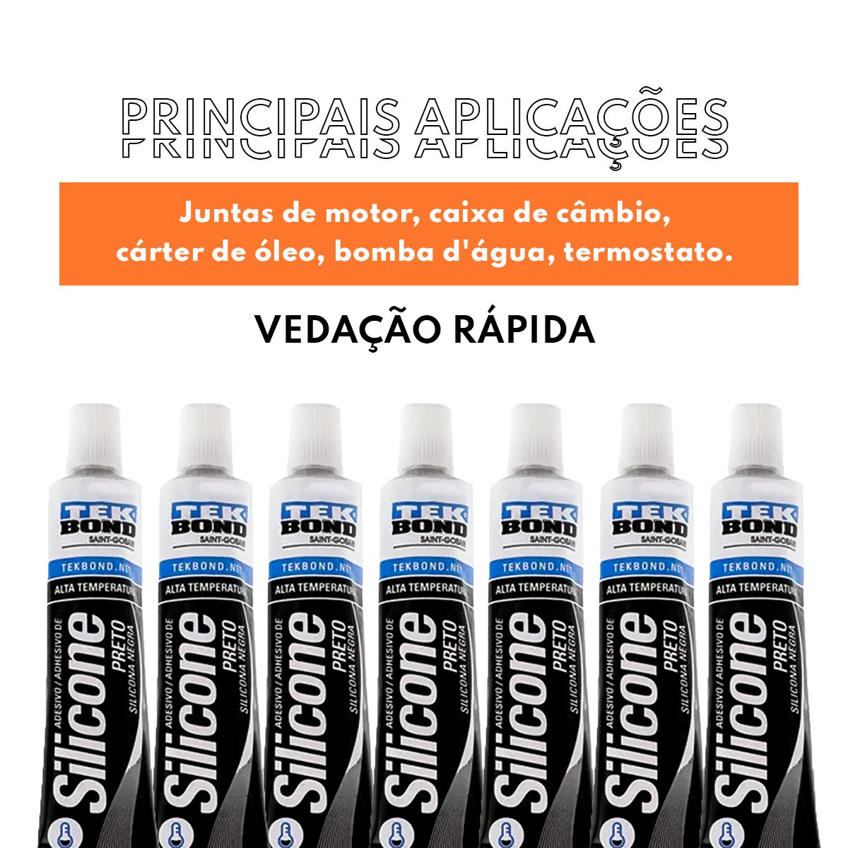 COLA SILICONE PRETO ALTA TEMPERATURA AUTOMOTIVA TEKBOND 50g - 7 UNIDADES