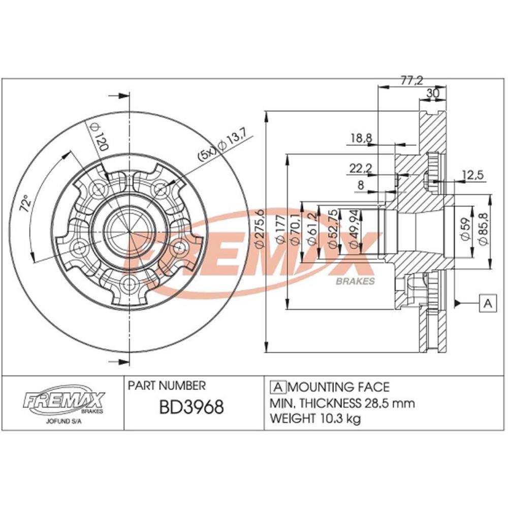 DISCO DE FREIO VENTILADO DIANTEIRO FREMAX - BD3968