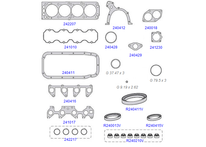 Composição: JUNTA DA DISTRIBUIÇÃO/CABEÇOTE/CÁRTER/DISTRIBUIÇÃO/TAMPA DE VÁLVULAS/COLETOR ESCAPAMENTO/COLETOR ADMISSÃO/SAIDA ESCAPAMENTO/ARRUELA/FLANGE BOMBA DE OLEO/O´RING/RETNTORES
