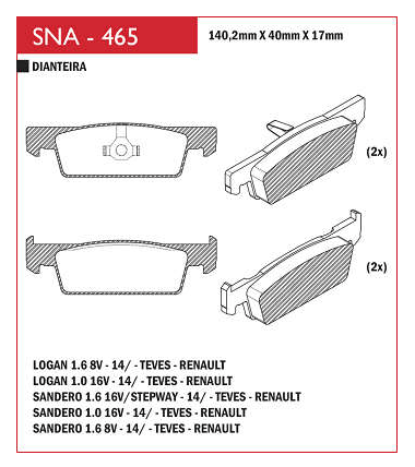 PASTILHA DE FREIO DIANTEIRO SPEED BRAKE SNA-462 SISTEMA TRW