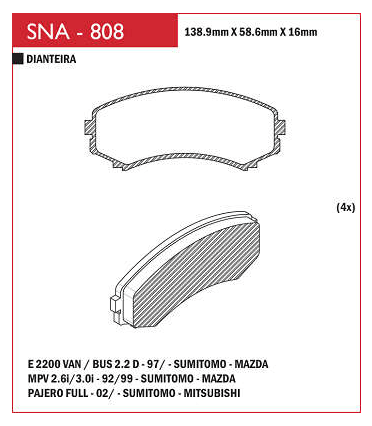 PASTILHA DE FREIO DIANTEIRO SPEED BRAKE - SNA-807 - HI-TOPIC